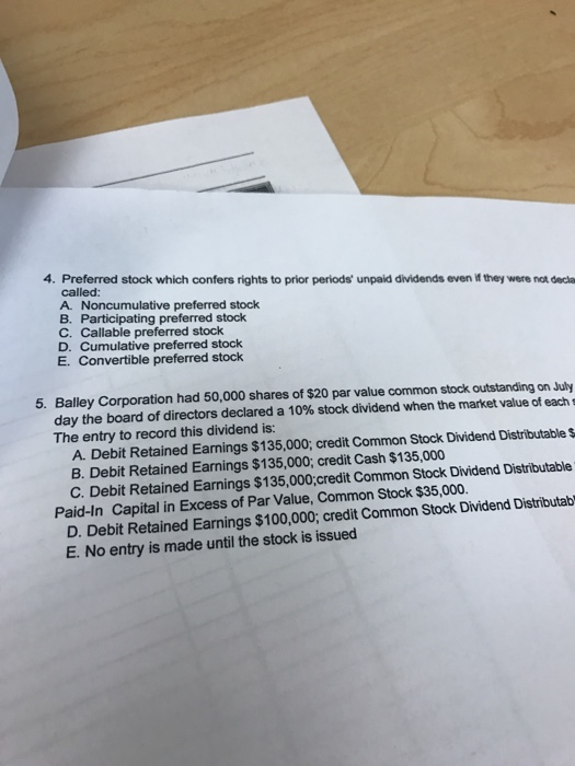 Solved Preferred Stock Which Confers Rights To Prior Chegg Com